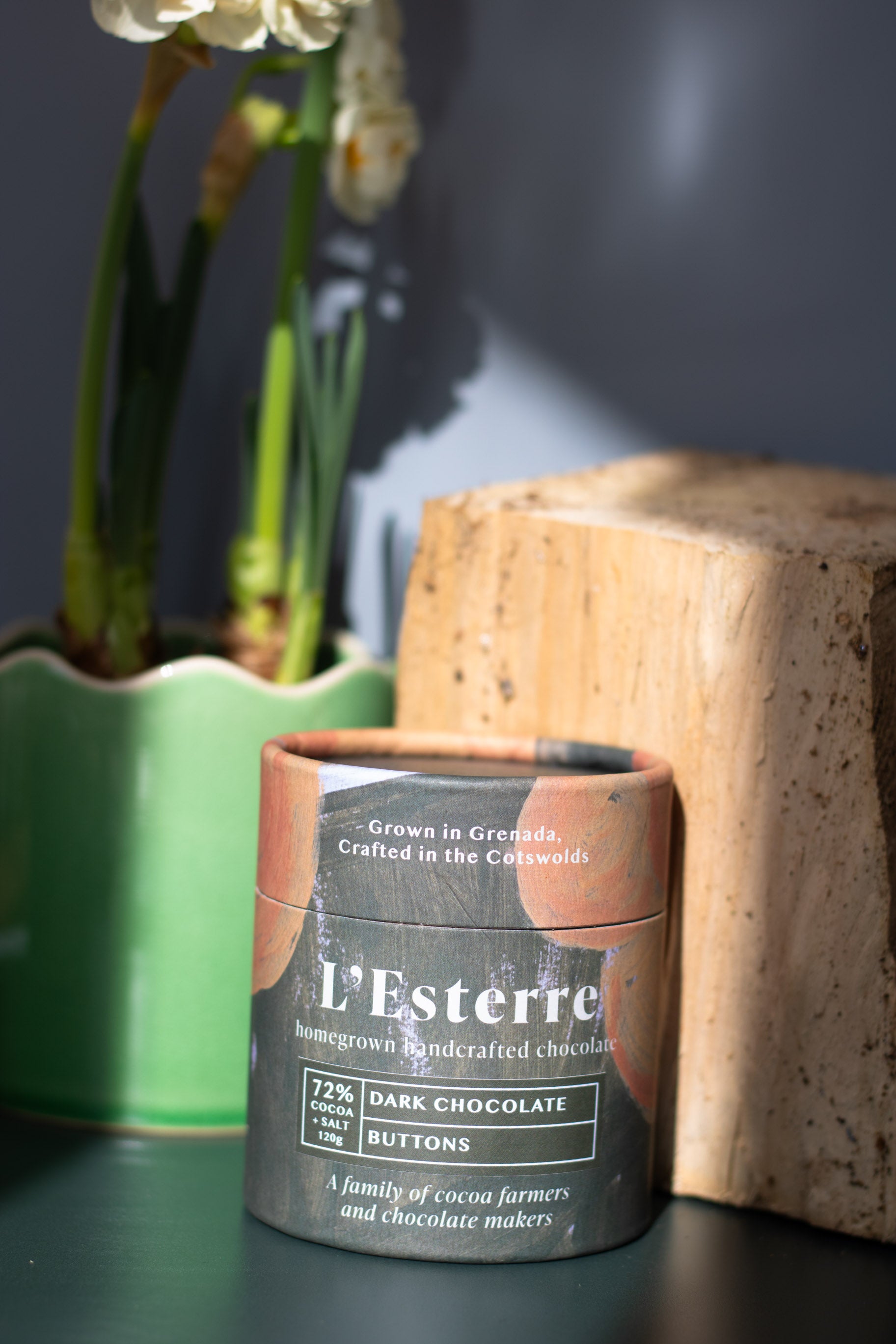 - 1 x L'Esterre 72% Sea Salt Dark Chocolate Buttons Pot (120g)